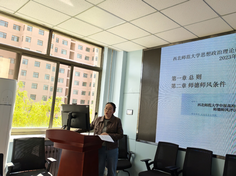 会议第三阶段,李晓霞老师为青年教师解读《新葡萄8883官网AMG思想政治理论课教师职称评审条件(修订)》。马克思主义中国化研究所始终把教师队伍建设,作为基础工作,将强化系所教师思想政治素质和师德师风建设摆在首要位置,以提高教师专业素质能力为关键,着力在建立科学评价体系、树立正确用人导向上下功夫,不断激发教师教书育人、科学研究、创新创造活力,努力培养高素质教师队伍。