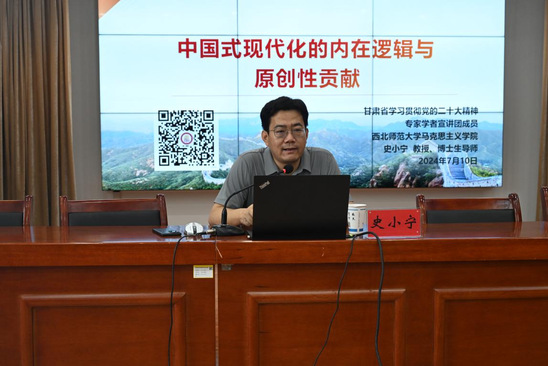 挂牌仪式后,史小宁院长作了题为《中国式现代化的内在逻辑与原创性贡献》的学术报告。报告从历史逻辑、理论逻辑、实践逻辑及原创性贡献等四个维度,对中国式现代化的内涵特征、逻辑机理和价值意蕴进行了系统解读和深入阐释。