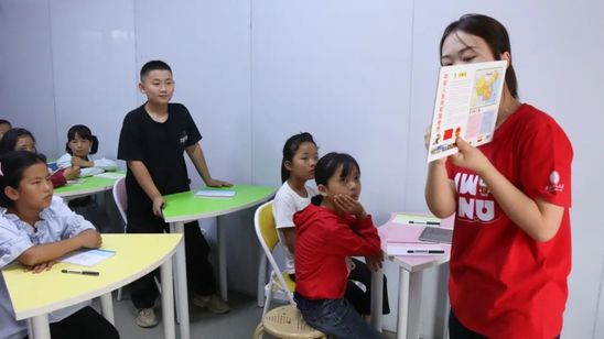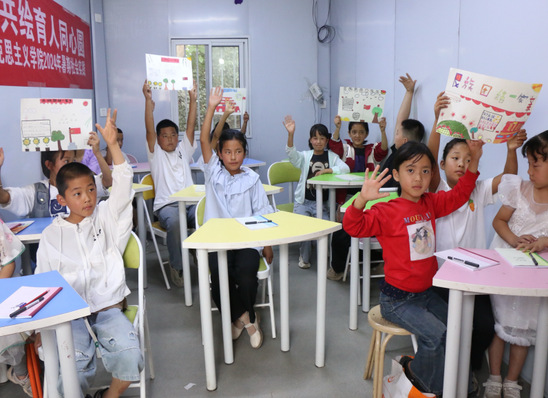 “汉满傈僳景颇壮,高山普米锡伯藏……”,在安置点的教室里,实践队员用一个个生动活泼的绕口令为本次课堂拉开序幕,增强了孩子们“56个民族是一家,共铸民族共同体,万众一心爱中华”的信念。队员们通过图片展示民族服饰、民族文化,让大家切身体验到了丰富多彩的民族风情,从而培养他们对民族文化的热爱与自豪。