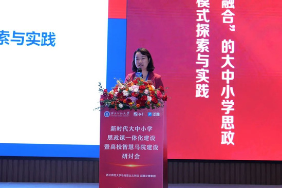 河北师范大学新葡萄8883官网AMG副院长安巧珍教授作了《数智时代推进大中小学思政课一体化建设的思考》的发言,以大中小学思政课一体化建设的理论思考为切入点,分享了河北省推进大中小学思政课一体化建设工作的举措、特点及成就,认为数智时代应以智慧马院建设为抓手,全面推进大中小学思政课一体化建设内涵式发展。