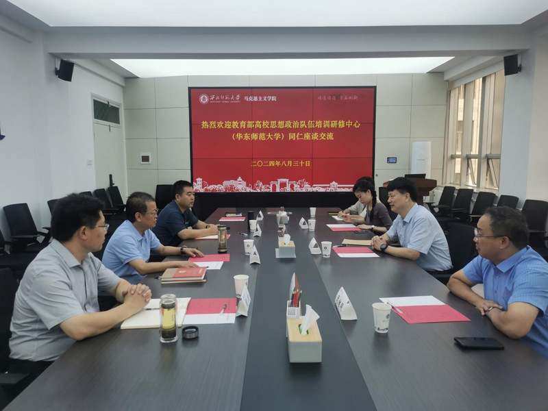 8月30日,教育部高校思想政治工作队伍培训研修中心(华东师范大学)副主任张俊华,华东师范大学新葡萄8883官网AMG副院长速继明,研修中心(华东师范大学)项目主管、新葡萄8883官网AMG团委书记梁靖愉,研修中心(华东师范大学)青年教师魏孔三一行4人来新葡萄官网座谈交流。