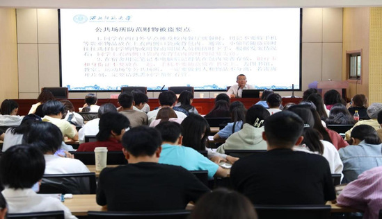 学校党委保卫部(武装保卫处)副部长石晓东作了“培塑品格 筑安全思维——校园安全的主要内容及重要意义”的专题讲座。石晓东以工作中常见的工作案例入手,从意识形态安全、校园安全文化、安全教育意义等方面进行讲解,同时重点针对电信网络诈骗、道路交通安全、宿舍消防安全的相关案例进行剖析,帮助同学们进一步提高了安全防范意识,掌握了一定的安全知识和防范技能,增强了自我防范能力。