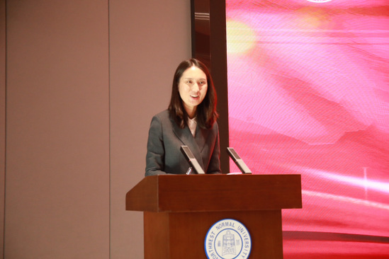 甘肃政法大学科研处副处长王瑞萍教授作了题为《深刻领悟进一步全面深化改革的战略思想》的主旨发言,围绕二十届三中全会对人口规模巨大的现代化、全体人民共同富裕的现代化、物质文明与精神文明相协调的现代化、人与自然和谐共生的现代化以及走和平发展道路的现代化的中国式现代化五个特征的重申,进一步深入讨论全面深化改革的重要问题,为我们深刻领悟全面深化改革的战略思想提供了新的视角。