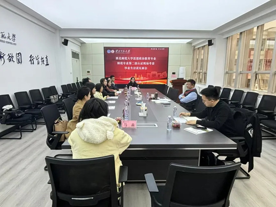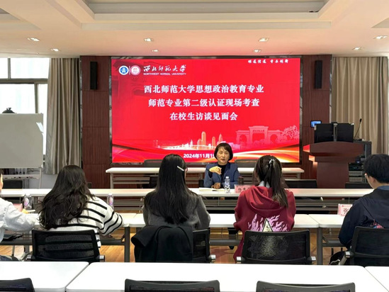 当天下午,专家组还分别与毕业生和在校生代表进行座谈。毕业生分享了入职后的教学心得及职业规划,以及工作中遇到的实际问题。专家组对毕业生提出了具体建议,勉励他们总结经验、持续提升教育教学能力。在校生座谈会上,专家通过学生模拟课堂展示等环节,详细考察了学生的教学基本功与综合素质。专家组高度评价了学生的理论素养与实践能力,鼓励他们不断提升教育教学技能,努力成长为优秀的思想政治教育专业教师。