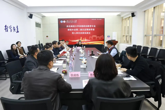 11月19日下午,专家组与用人单位代表进行座谈,广泛收集关于思想政治教育专业毕业生教学能力和职业发展的反馈意见。与会中小学负责人一致认为,新葡萄8883官网AMG思想政治教育专业毕业生在教学实践中综合素养突出,表现优异,并提出继续加强实践教学、深化校地合作、推进大中小学思政课一体化建设的意见建议。