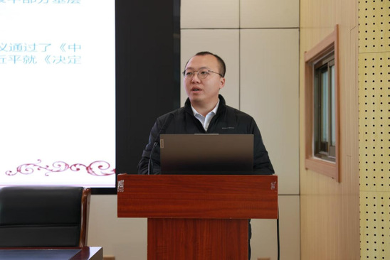 2022级思想政治教育专业博士研究生王涛从党的二十届三中全会的重要地位、主要内容以及贯彻落实全会精神的举措等三个方面带领学员共同学习。