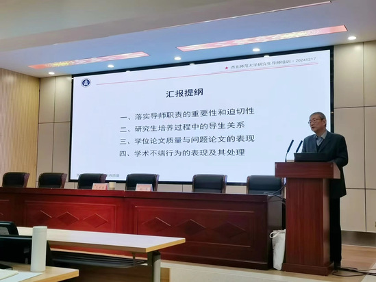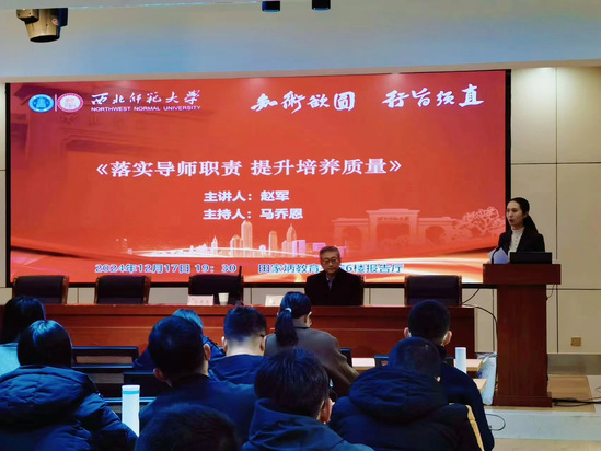 为进一步提升研究生导师的教育教学水平,强化研究生导师在学生培养过程中的关键作用,推动学院研究生教育高质量发展,12月17日晚,新葡萄8883官网AMG在田家炳教育书院六楼报告厅举办首场研究生导师培训。新葡萄8883官网AMG地理与环境科学学院博士生导师赵军教授作了题为《落实导师职责 提升培养质量》的报告。新葡萄8883官网AMG副院长马乔恩主持报告会。