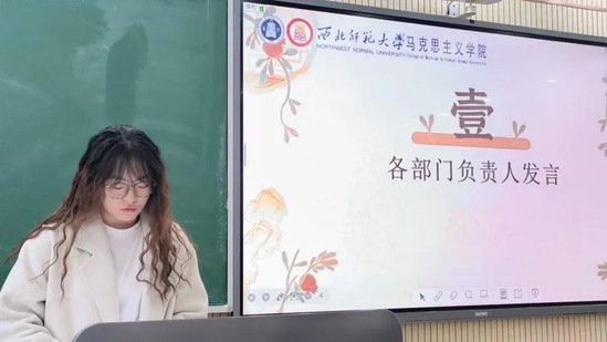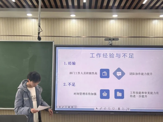 会上,青马工作室新闻编辑部负责人李浩鹏、摄影摄像部负责人王思彤、平面设计部负责人柴家珅和总负责人肖雨新分别总结了2024年的工作,梳理了存在的问题与不足,并结合2025年工作展望提出了改进设想。