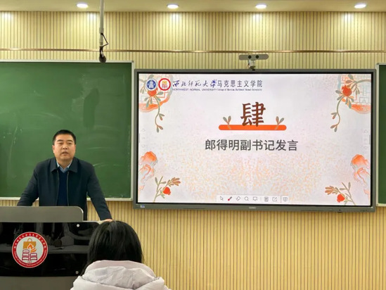 郎得明副书记作了总结发言。他充分肯定了青马工作室2024年的工作成绩,对青马工作室各位同学的辛勤付出表示感谢。他指出,2024年,青马工作室围绕新葡萄8883官网AMG党的建设、人才培养、科学研究、学科建设、学生安全教育与就业创业等中心工作以及本科教育教学水平评估、思想政治教育专业认证、大学生社会实践、重要学术会议等重点,创新开展工作,取得了显著成效,有效扩大了学院办学声誉和办学影响力。2025年,希望大家继续保持积极进取、奋发有为的精神状态,持续推动青马工作室工作取得更好的成绩。一是提高思想认识,增强做好工作的自觉性。要以习近平新时代中国特色社会主义思想为指引,深入学习习近平总书记关于意识形态工作的重要论述,提高思想认识,增强做好学院新闻宣传工作的自觉性;二是做强正面宣传,为学院事业发展营造良好氛围。要结合学院重点年度工作和阶段性工作安排,树立精品意识,精心设置议题,推出一系列反映学院锐意进取、推进事业发展的专题报道,全方位拓展对外宣传传播渠道,多角度讲好“西师马院”故事,凝聚全院师生共识,营造学院事业发展的良好氛围;三是树立系统思维,全方位提升自身综合素质。青马工作室各位同学要在扎实学习专业知识的同时,认真学习新闻传播知识,完善知识结构,提升综合素质,做到学习专业知识与学习新闻传播知识两促进、两不误,成长为具有精深专业知识与广博文化知识的综合性人才。