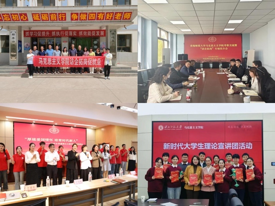 认真落实《关于弘扬教育家精神加强新时代高素质专业化教师队伍建设的意见》精神,坚持引育并重,加强师资队伍建设,为学院事业发展蓄势赋能,引导全体教师加强师德修养,恪守学术规范,做“四有好老师”,立志成长为“大先生”。召开学院人才队伍建设推进会,从国内高水平大学引进1名教授和6名优秀青年博士充实师资队伍。指导青年教师提升教育教学和科研能力,组织开展“全员磨课·打造金课”集体教研活动,有效激发青年教师教学热情,取得积极成效。马乔恩教授荣获第七届全国青教赛思政组三等奖,马乔恩、刘姌荣获第七届甘肃省高校青年教学竞赛思政课专项组一等奖和二等奖。第二届全省大中小学思政课教师“大比武”教学展示活动中,姜宝莲、韩璐、刘姌分别荣获相关组别一等奖,李晓霞、赫蓉分获所在组别二、三等奖。在学校第八届青年教师教学竞赛中,马乔恩、刘姌、姜宝莲荣获二等奖、三等奖,学院获优秀组织单位称号。1位教师晋升为云亭青年教授,16名教师晋升副高级职称。加强高层次人才培育推荐力度,史小宁教授新增为2024年甘肃省领军人才人选,曹亚斌教新增为第三批陇原青年英才选拔人选,马乔恩教授入选甘肃省第五批“飞天青年学者”。形成了高层次人才牵引带动教师队伍成长成才的良好氛围。坚持“走出去”和“引进来”相结合,组织教师赴清华大学、北京大学、东北师范大学等院校研修学习,加强与省内外多所高校新葡萄8883官网AMG交流合作,邀请骆郁廷、冯刚、吴潜涛等知名专家来院传经送宝,开展学术交流,全面提升教师队伍学术造诣、完善知识结构,强化教学能力,学院师资队伍持续优化,整体素质大幅提升。