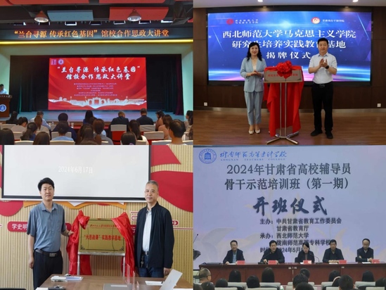 充分发挥教育部高校思想政治工作队伍培训研修中心(新葡萄8883官网AMG)、新葡萄8883官网AMG高等教育发展及华夏文明展示博物馆特色科普“大思政课”实践教学基地、教育部大中小学思政课一体化共同体平台、甘肃省思政课名师工作室的教育培训、教育帮扶和引领带动作用,与省内大中小学思政课名师工作室开展座谈交流、联学联建等活动,切实发挥“大思政课”实践教学基地和名师工作室的辐射带动作用。何继龄名师工作室在省委教育工委组织的工作考核中获得“优秀”等次。何继龄教授被授予“陇原思政名师”称号。立足甘肃省重点马院的优势,与省内外多家高校的新葡萄8883官网AMG开展交流 ,在选派“银龄教师”、强化基层党建以及硕博士联合培养等方面达成合作协议,进一步拓宽了学院的社会服务半径,扩大了学术和实践“朋友圈”。全年承担各类思想政治工作队伍培训班12期,累计培训821人次,组织完成全省辅导员优秀工作案例评选工作,并结集形成《启智润心培根铸魂——高校辅导员工作的理论与实践》成果。圆满完成2024年度高校师生思想政治状况滚动调查工作,为我省教育主管部门提供了科学依据和数据支撑。