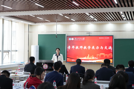 在教学观摩与备赛经验分享环节。刘一博、吴宁、王家涛、陈旭分别以《讲出让学生“不舍”的思政课》《站稳思政课讲台的三个创新思维》《辩证唯物主义世界观》《“三镜”解码人与自然和谐共生》为题,现场作了教学展示,就如何讲好一堂生动的思政课,如何参加全国、全省思政课教学比赛并获得好成绩,分享了成功经验,交流了心得体会。张馨予则从声、台、形、表四个方面对青年教师教学礼仪作了详细指导和示范。