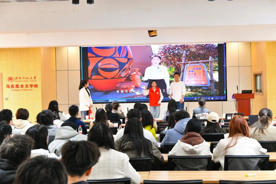 宣讲团成员杨静娴,赖发珊,徐子珺以《遇见天水一场8000年的人间值得》为主题,向听众展示了天水的特色与魅力;田得贵同学以《从<哪吒2>看中国传统文化发展》为题,强调中华优秀传统文化创造性转化与创新性发展的重要性;马俊同学以《DeepSeek等人工智能赋能中国式现代化:一场技术革命与文明形态的对话》为主题,指出人工智能赋能中国特色社会主义现代化强国建设的潜力与魅力。