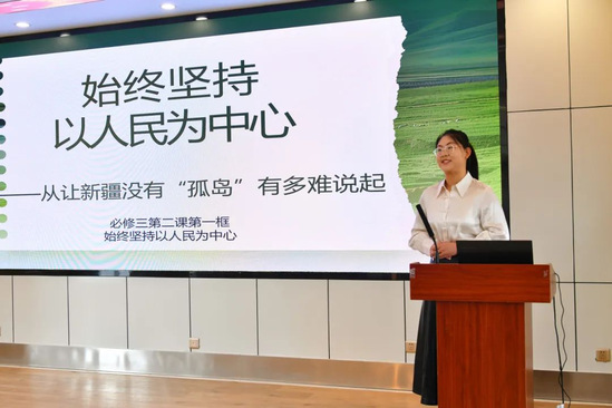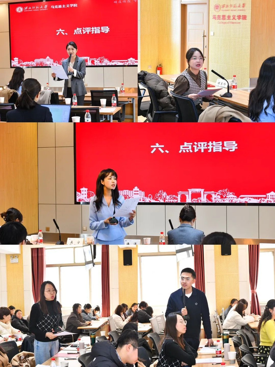 硕士研究生高楠立足快与慢辩证逻辑视角,围绕中国特色社会主义进入新时代构建教学内容体系;硕士研究生宋怡阳围绕“始终坚持以人民为中心”开展教学展示。