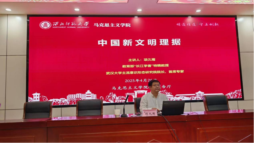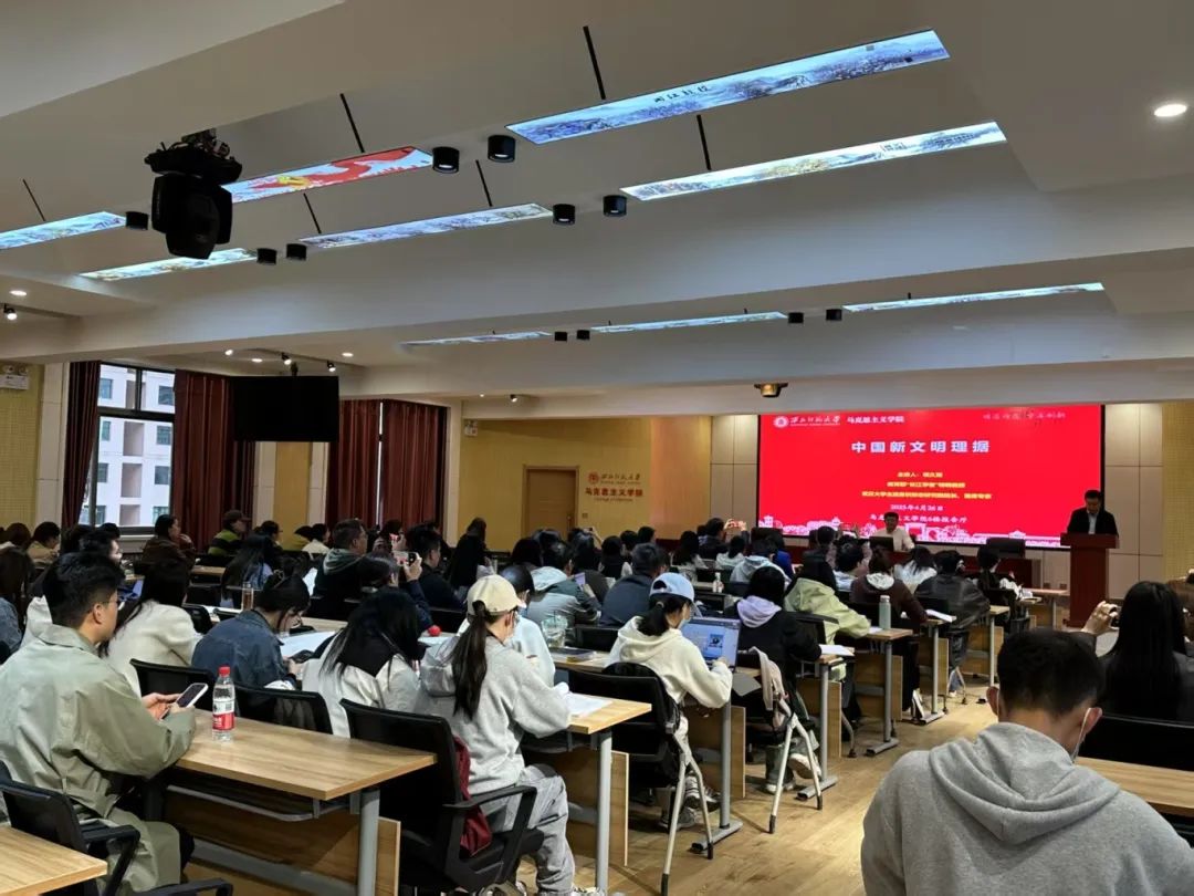 报告会上,项久雨教授以《中华民族现代文明理据——兼谈学术论文选题》为题,从“文化关乎国本、国运”的重要地位切入,引出在实现中华民族伟大复兴的征程上,实现中华文明现代化转型的迫切性和必要性。项久雨教授学术功底深厚,系统阐述了中华民族现代文明的现代性、民族性、文明性、历史性、复兴性五大核心特征,并从重思人与物的关系、人与国家的关系、人与自我的关系、人与社会的关系、人与自然的关系、人与制度的关系以及文明与文明之间的交往关系等七个方面,对中华民族现代文明的未来发展方向进行了前瞻性展望。项教授的报告论点明确、见解精辟、逻辑严谨,把晦涩的学术概念转化为通俗易懂的语言,将中华民族现代文明的复杂理论抽丝剥茧般展开,为现场师生展现了中华民族现代文明理论研究与学术探索的前沿动态,其渊博的学识、丰硕的研究成果以及潜心治学的精神,令在场师生都深受感染与启发。