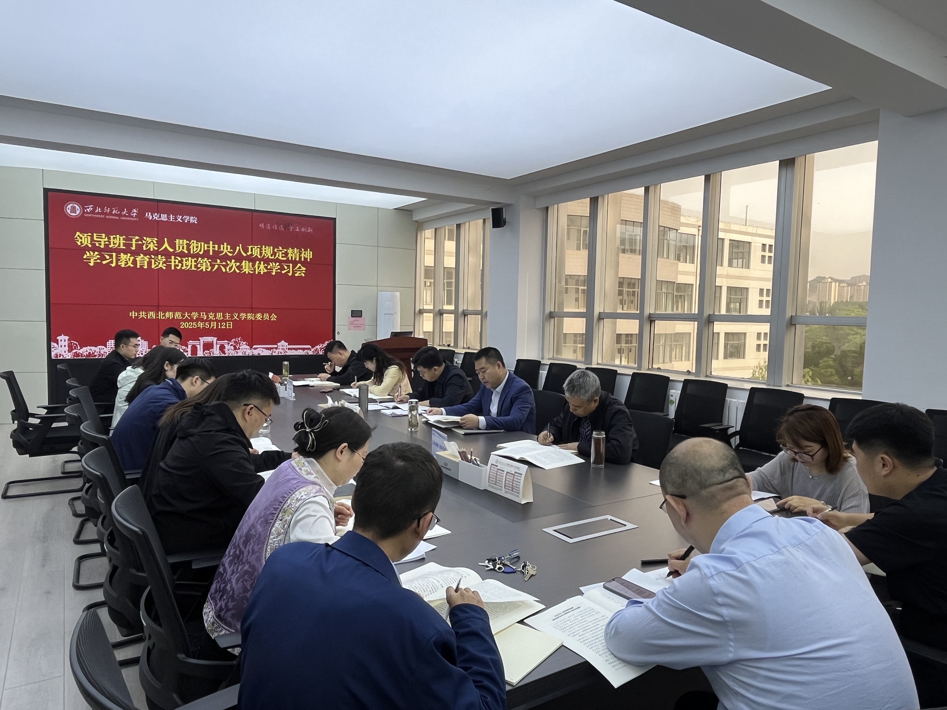 5月12日,新葡萄8883官网AMG召开党委领导班子深入贯彻中央八项规定精神学习教育读书班第六次集体学习会议。学院领导班子、党委委员、各党支部书记、副书记、党委组织员参加会议,党委书记郎得明主持会议。