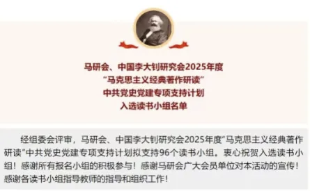 新葡萄官网读书小组入选2025年度“马克思主义经典著作研读”支持计划