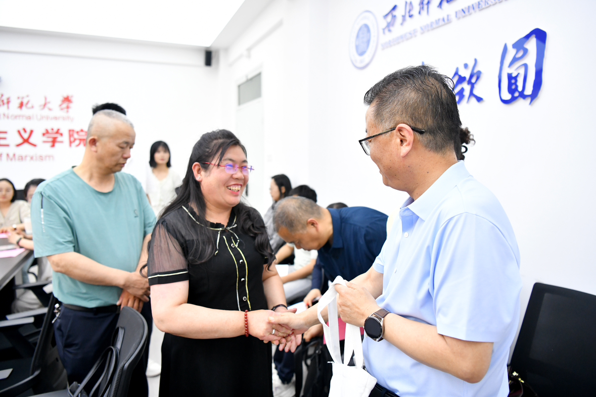 教育部高校思想政治工作队伍培训研修中心常务副主任孙健向家长赠送纪念品。