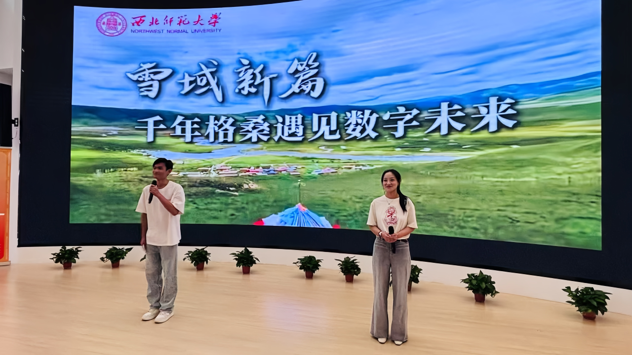 新葡萄8883官网AMG“小红马”大学生理论宣讲团成员高楠、马俊以《雪域教育谱新篇:千年格桑开出数字未来幸福花》为题,分享了在甘南支教实习的实践经历,通过“云端课堂”“牧区数字化教学点”等案例,展现了新葡萄8883官网AMG服务西部基础教育、农村教育、民族教育的生动实践,诠释着新时代青年学子扎根西部、服务基层的责任与担当。