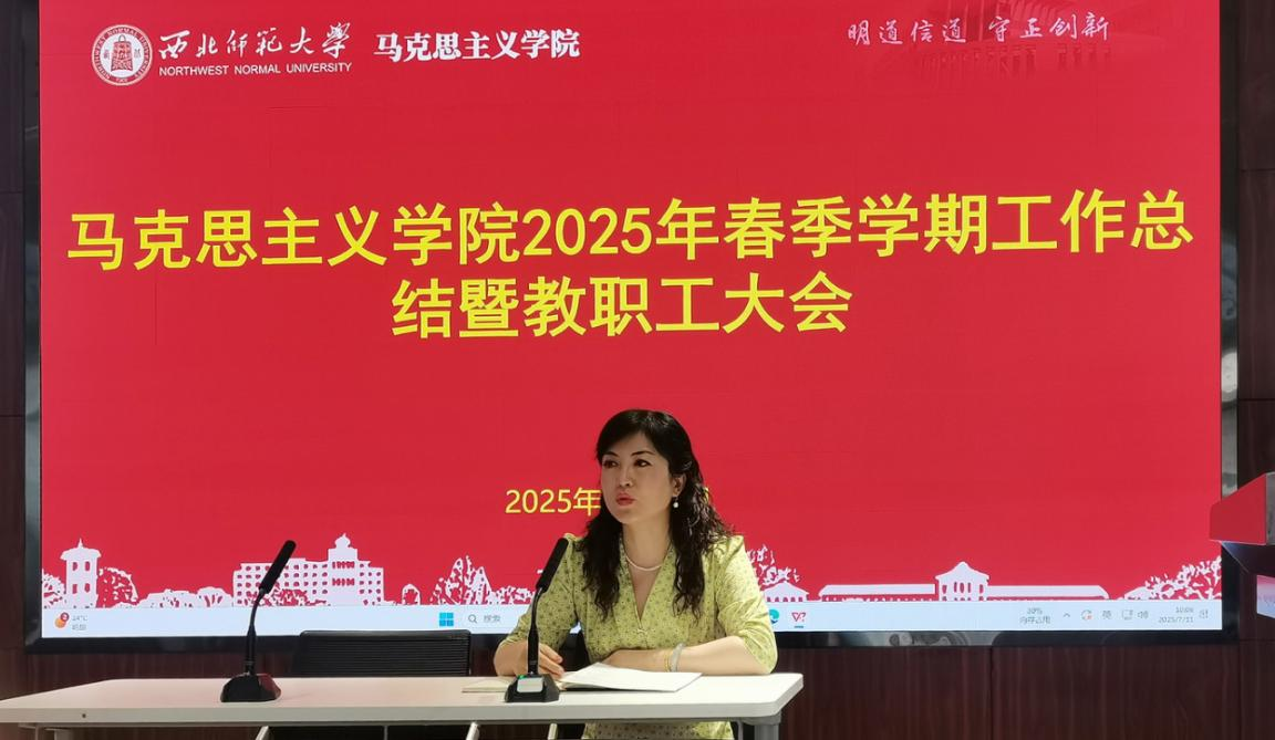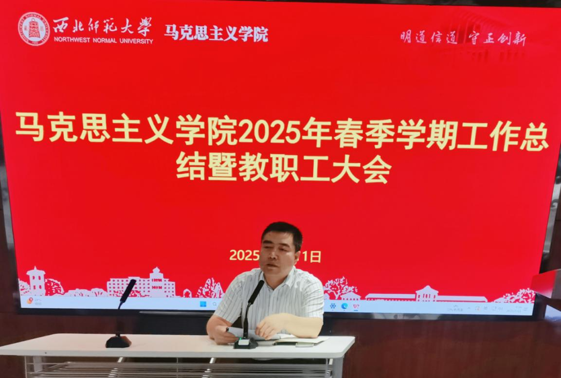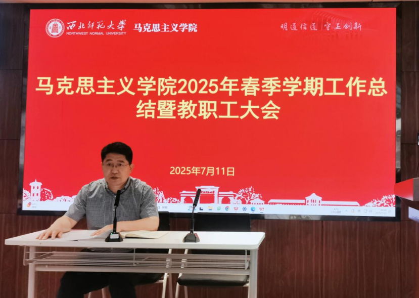 郎得明通报了上半年工作。他指出,2025年上半年,新葡萄8883官网AMG坚持以习近平新时代中国特色社会主义思想为指引,深入贯彻党的二十大和二十届二中、三中全会精神,围绕落实立德树人根本任务,认真对照《中共新葡萄8883官网AMG委员会 新葡萄8883官网AMG2025年工作要点》和《新葡萄8883官网AMG2025年工作要点》及工作台账,以高质量党建为统领,统筹推进思想政治理论课教学改革创新和人才培养、科学研究、学科建设、师资队伍建设等重点工作,有效推进了学院事业内涵式高质量发展。他强调,上半年学院各项工作稳步推进并取得良好进展,离不开全体教职工的辛勤付出,充分体现和凝结了全体教师的责任担当和积极作为。希望大家合理安排暑期生活,增强安全意识,注重学习积累,为新学期的工作蓄势赋能。