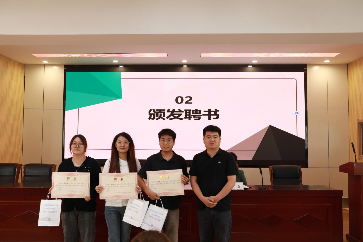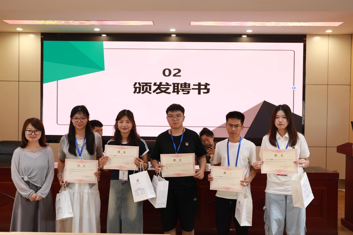 与会老师对过去一年学生组织的工作给予充分肯定,同时对新一届学生骨干提出了殷切期望,希望他们牢记使命,勇于担当,强化政治引领、责任担当与创新意识,以“严要求、高标准”推动学院学生工作再上新台阶。会议还向2024届研究生会、团委学生会主席及青马工作室总负责人颁发聘书及纪念品。