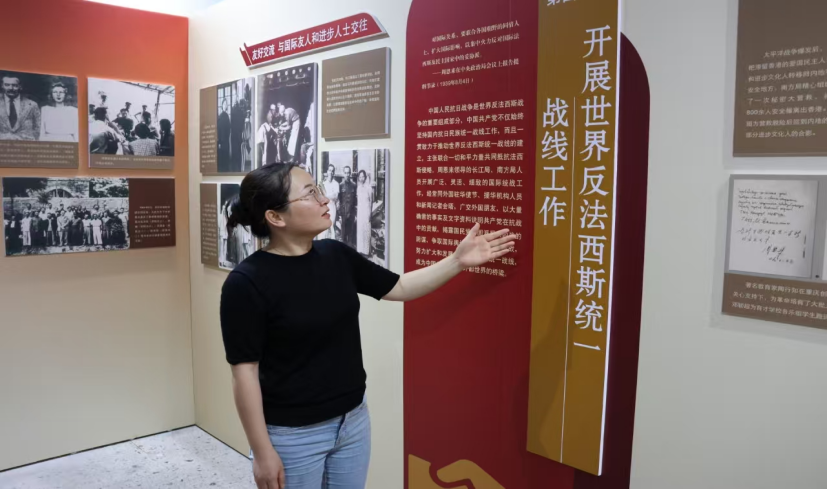 图为“赤帜绍兴映初心”实践团带队老师向同学们讲解展板内容。 张静怡 供图