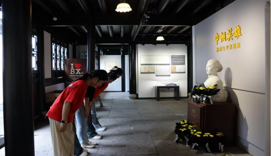 秋瑾故居是近代民主革命先驱秋瑾成长与投身革命的重要场所,承载着“鉴湖女侠”为民族解放事业慷慨捐躯的壮烈精神。实践团队怀着崇敬之心,依次参观了秋瑾生平事迹展厅、起居室、书房等区域。