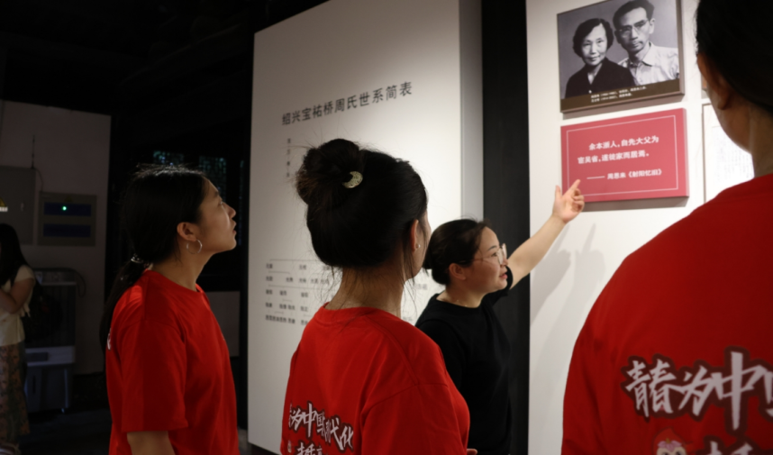 周恩来祖居作为周氏家族世代传承的重要历史遗存,既是中华传统家风的生动载体,更是红色文化教育的珍贵场所。在周恩来祖居及纪念馆,同学们深度了解了周总理的家族历史和生平事迹,体悟并学习了周总理勤政廉洁的精神风范。馆内陈列丰富,生动展现周恩来与故乡绍兴的紧密联系及1939年宣传抗日民族统一战线的情景,再现周氏家族生活场景,展现他平凡而光辉的一生。