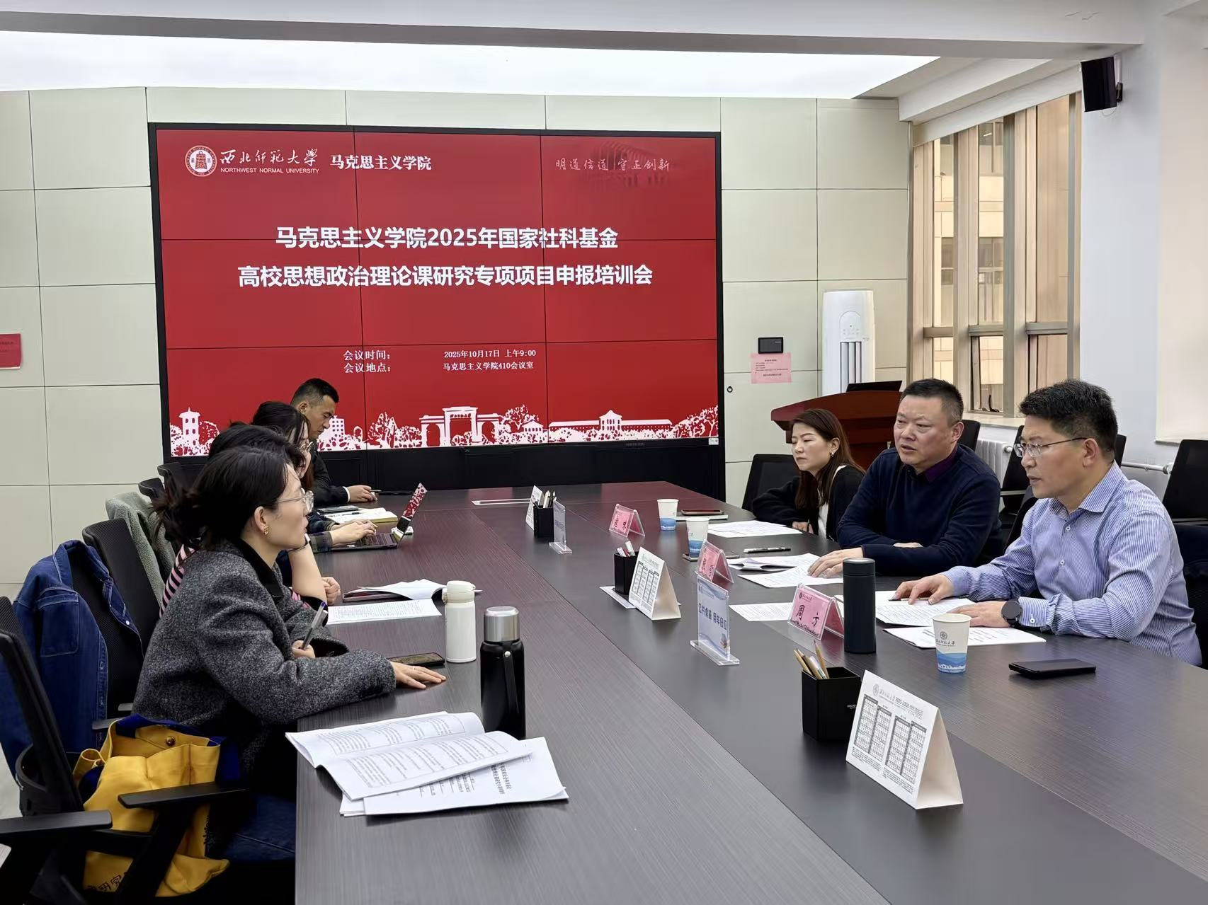10月17日上午,新葡萄8883官网AMG组织开展2025年度国家社科基金思政专项项目申报培训会。会议邀请兰州大学新葡萄8883官网AMG张哲教授、新葡萄8883官网AMG科学研究院(社会科学处、学术委员会秘书处)寇眯指导。副院长马乔恩和项目申报教师参加会议,副院长周方主持会议。